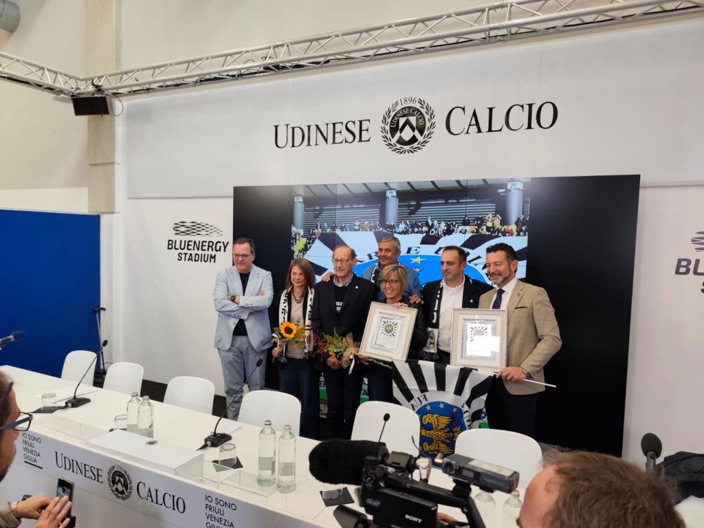 Alla cerimonia erano presenti, l’assessore Monica Zilli per la Regione Friuli Venezia Giulia, Eros Cisilino per ARLeF e Chiara Dazzan per il comune di Udine e Franco Collavino per l’Udinese Calcio. In rappresentanza dell’Associazione Udinese Calcio Bepi Marcon, Candido Odorico e Federico Budai.